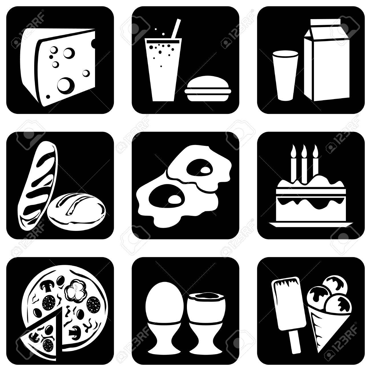 set of silhouettes of icons on the food theme